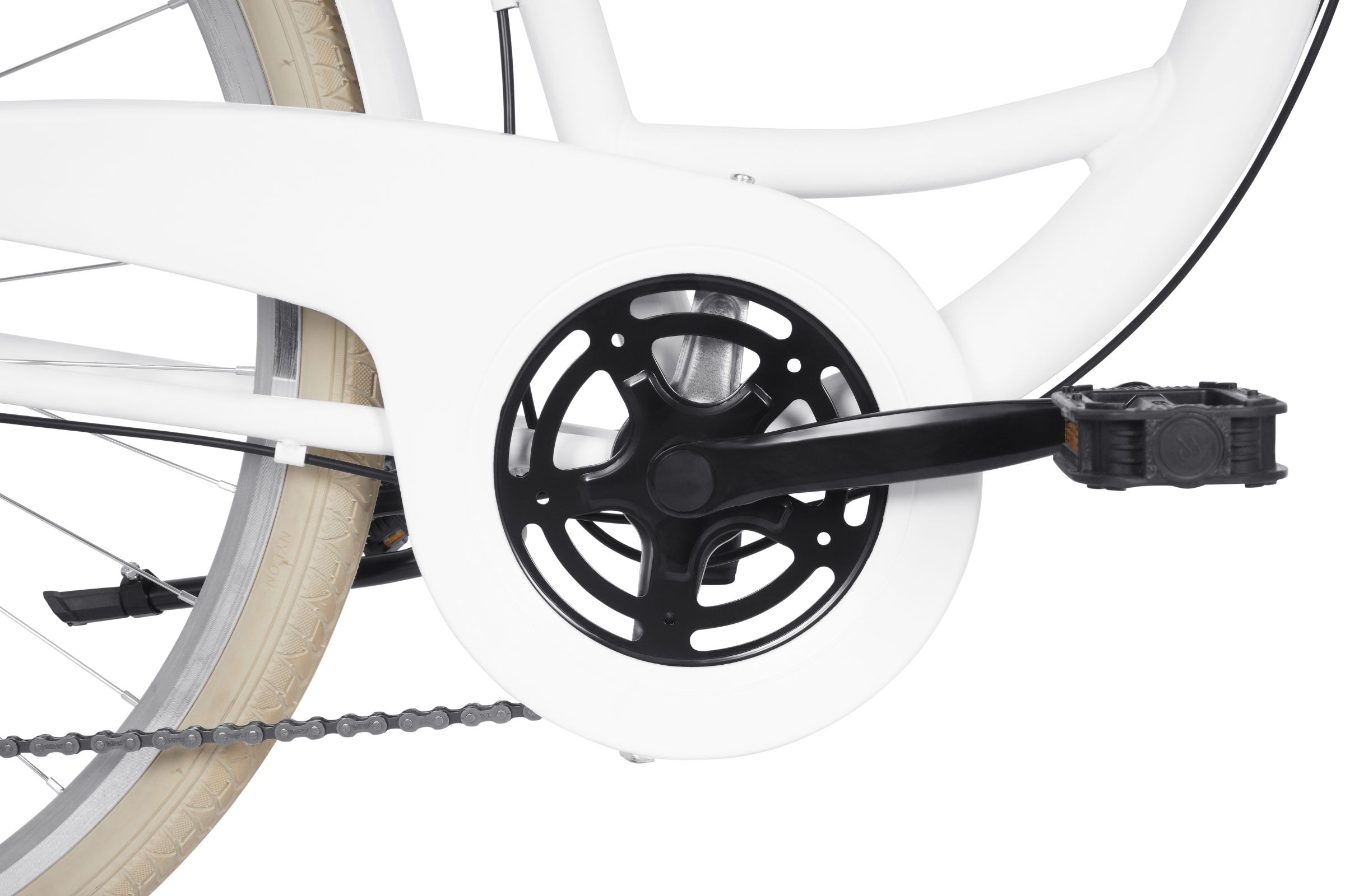 The bike has a LED lighting system with reflective details for long-lasting use. The bright light is visible from at least 100 meters. Battery-powered LED lights provide a quiet and hassle-free riding experience – simple and practical.