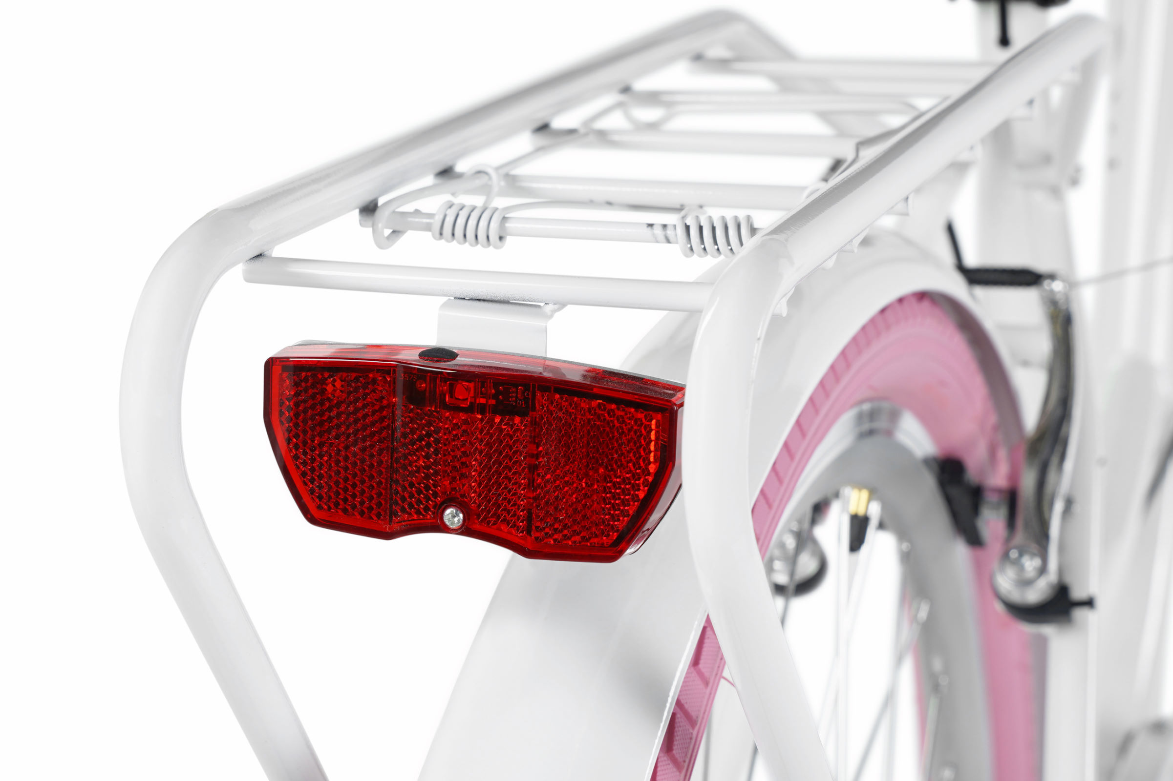 The bike features an LED lighting system with reflective details for long-lasting use. The bright light is visible from at least 100 meters. Battery-powered LED lights provide a quiet and hassle-free riding experience – a simple and practical solution.