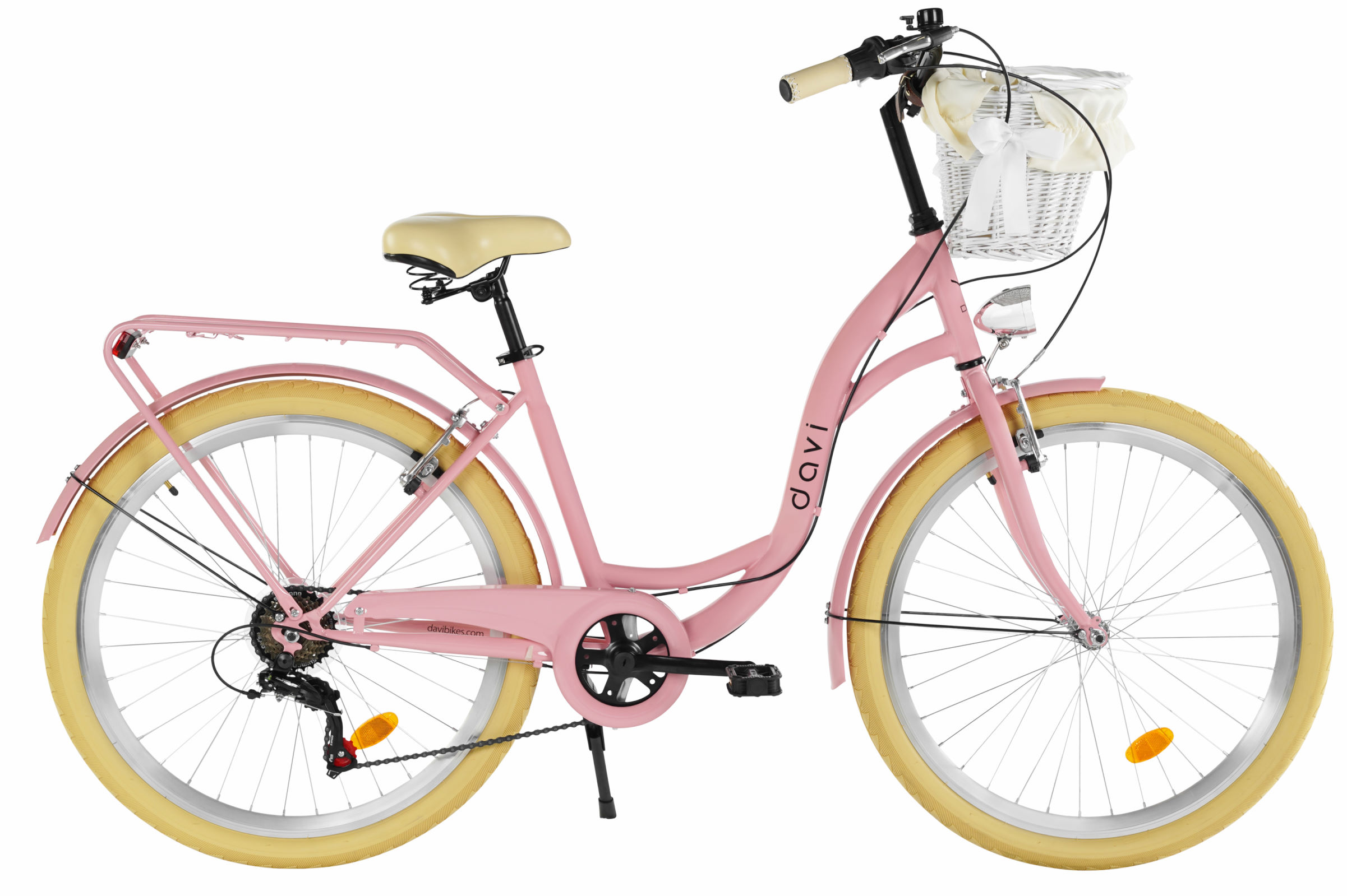 The Davi Amelia is not only safe but also extremely practical. The woven front basket is perfect for carrying schoolbooks, toys, or picnic gear, while the rear rack adds extra functionality for everyday errands.